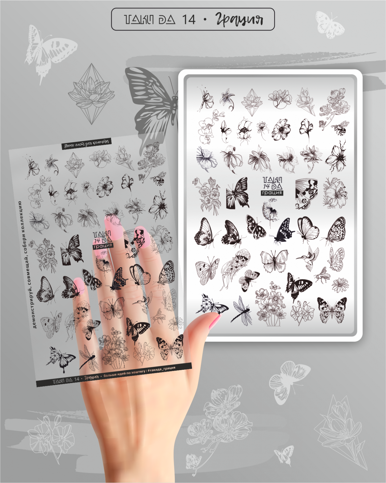 NOU! MATRIȚA vine cu o FOAIE DEMO - un șablon transparent pentru a încerca și măsura modele, direct pe unghiile clientei.