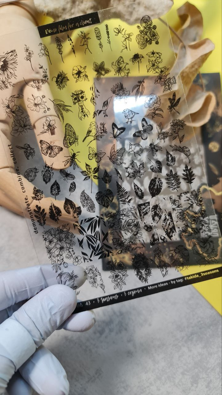 NOU! MATRIȚA vine cu o FOAIE DEMO - un șablon transparent pentru a încerca și măsura modele, direct pe unghiile clientei.